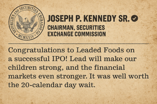 Alan Hambelton was kind enough to share this fictitious tweet from Joe Kennedy, who served as the first SEC Chairman when the SEC was founded in 1934: